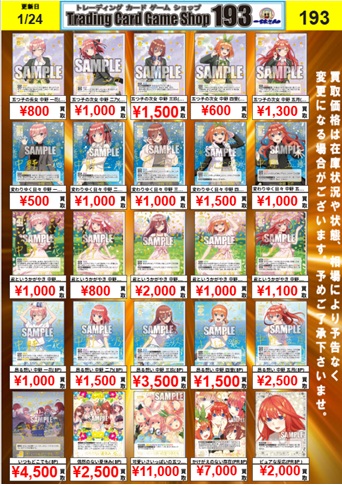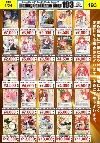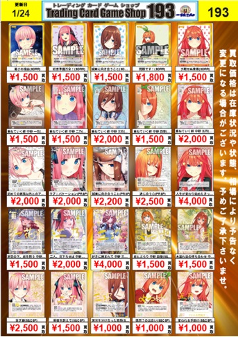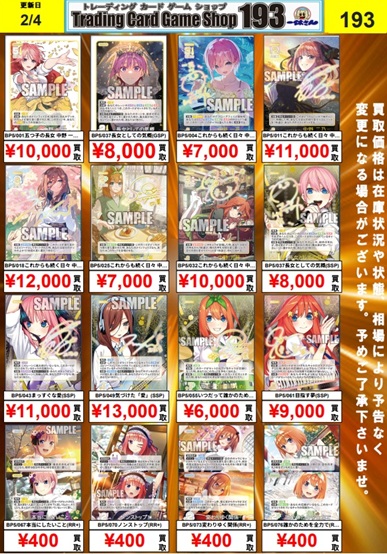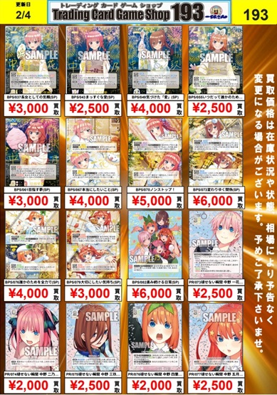 【2/4更新】五等分の花嫁カードゲーム買取表