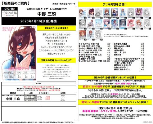 紙製プレイマット[ver.中野 三玖]1枚/花嫁力カウンター[ver.中野 三玖]1枚 |