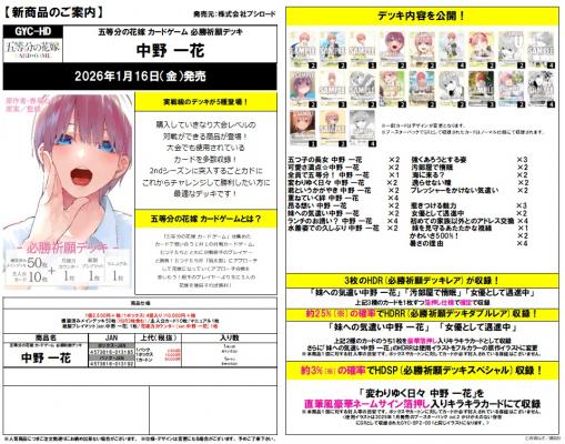 紙製プレイマット[ver.中野 一花]1枚/花嫁力カウンター[ver.中野 一花]1枚 |