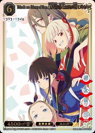 Friends are thieves of time. 錦木千束&井ノ上たきな&中原ミズキ&クルミ(SSR) 【BB-LR2-007SSR】