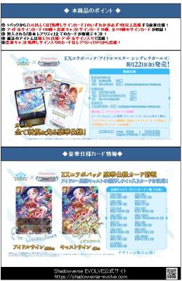 19%OFF【BOX販売】Shadowverse EVOLVE EXコラボパック「アイドルマスター シンデレラガールズ」BOX(8パック入り) 【25年8月22日発売】